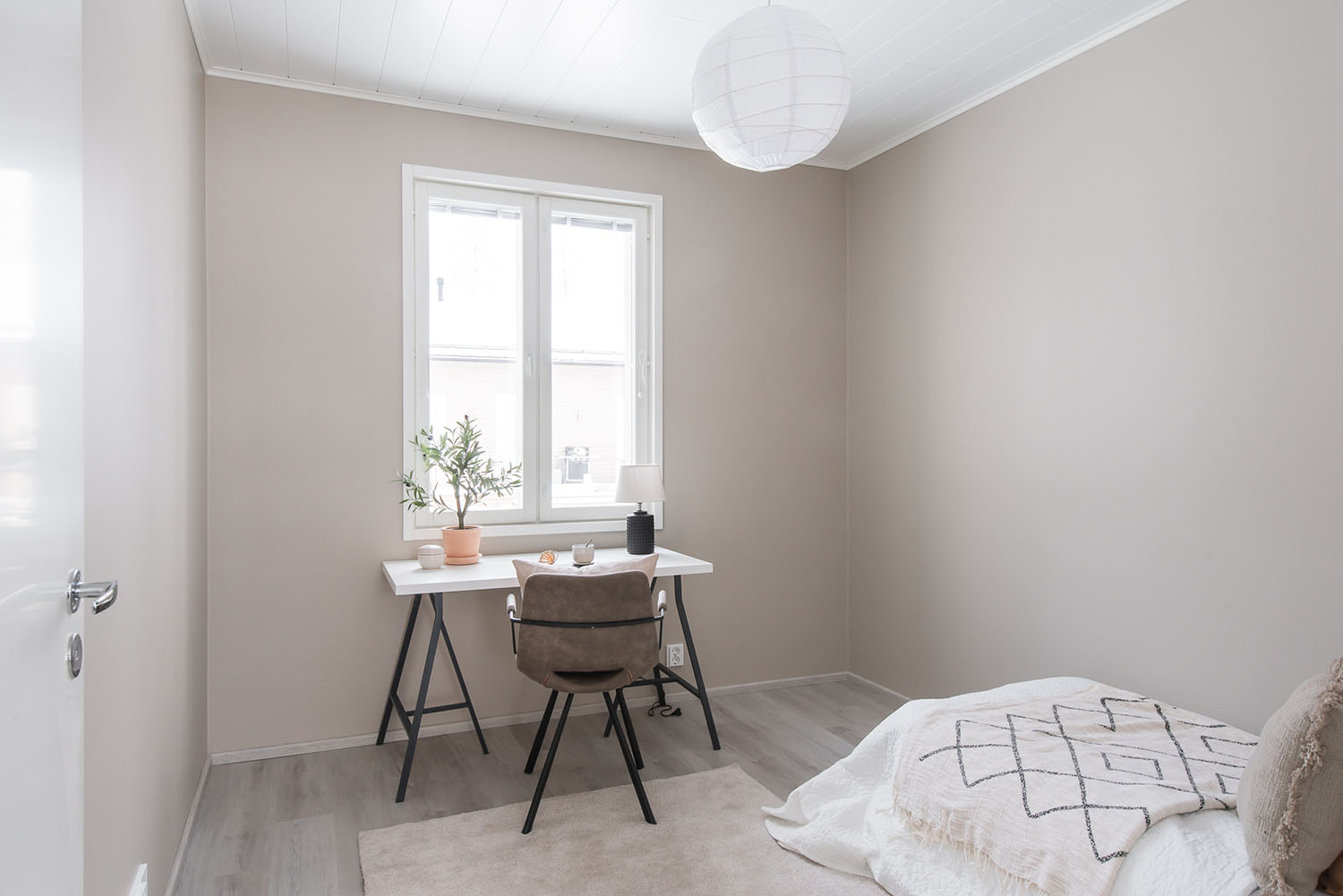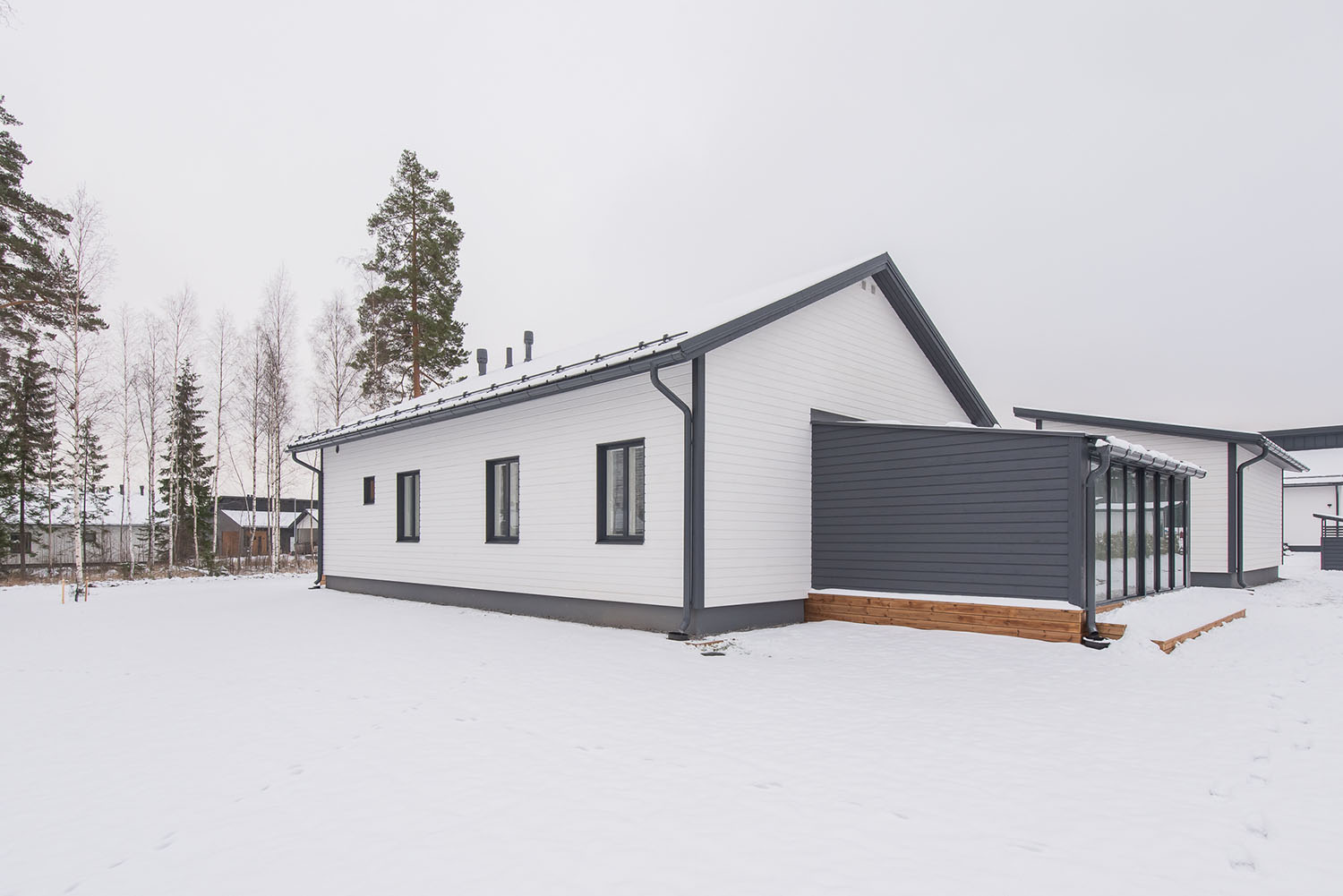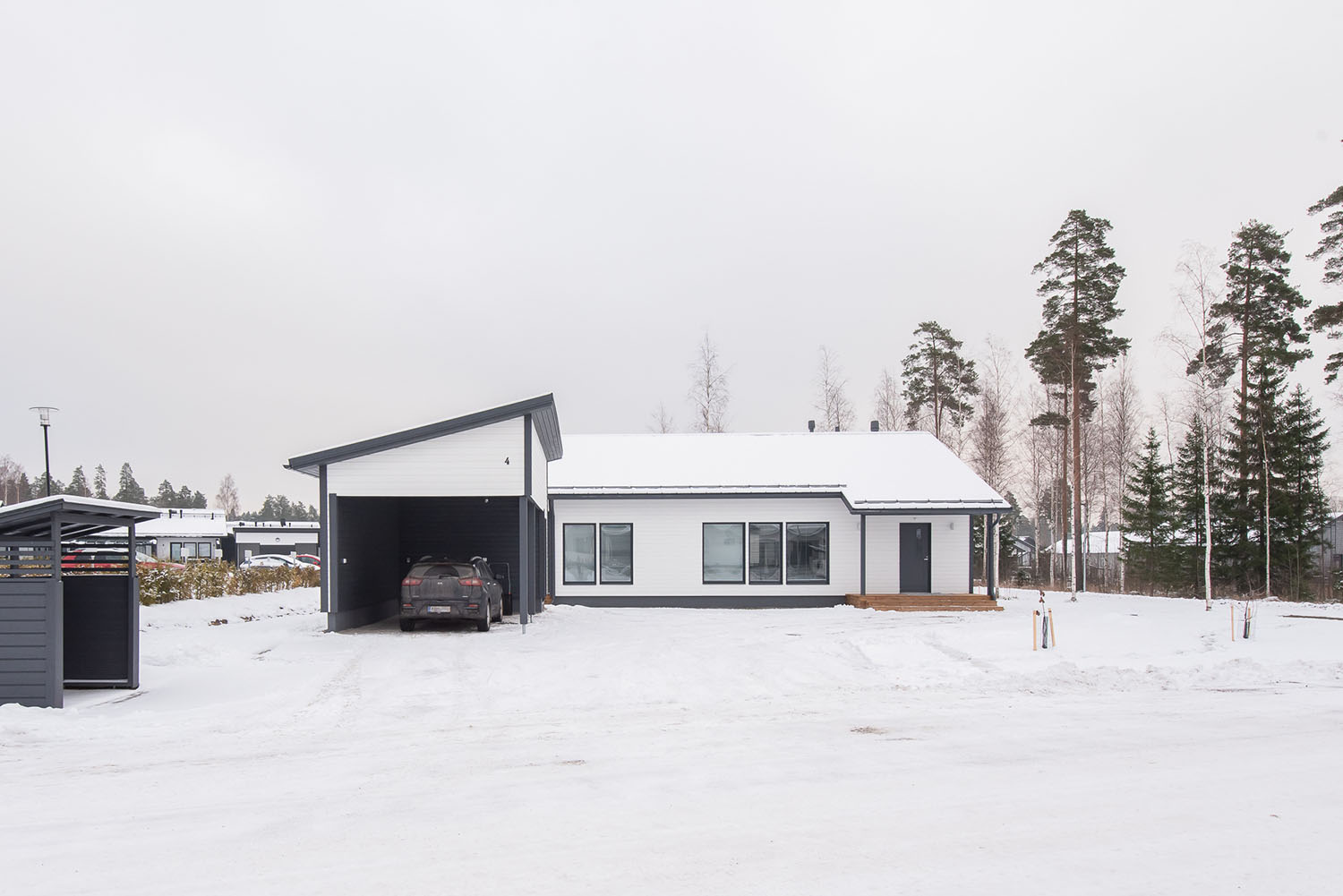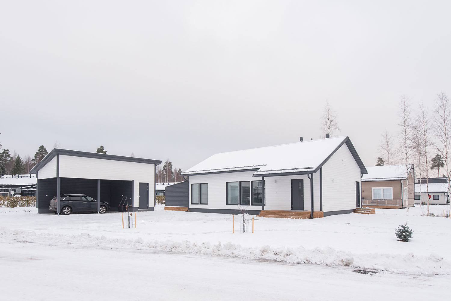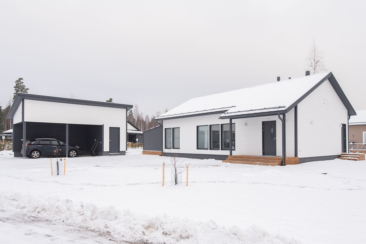 Valoisa kolmen makuuhuoneen okt noin 120 asuinneliötä joiden lisäksi autokatos ja lämmin varasto.