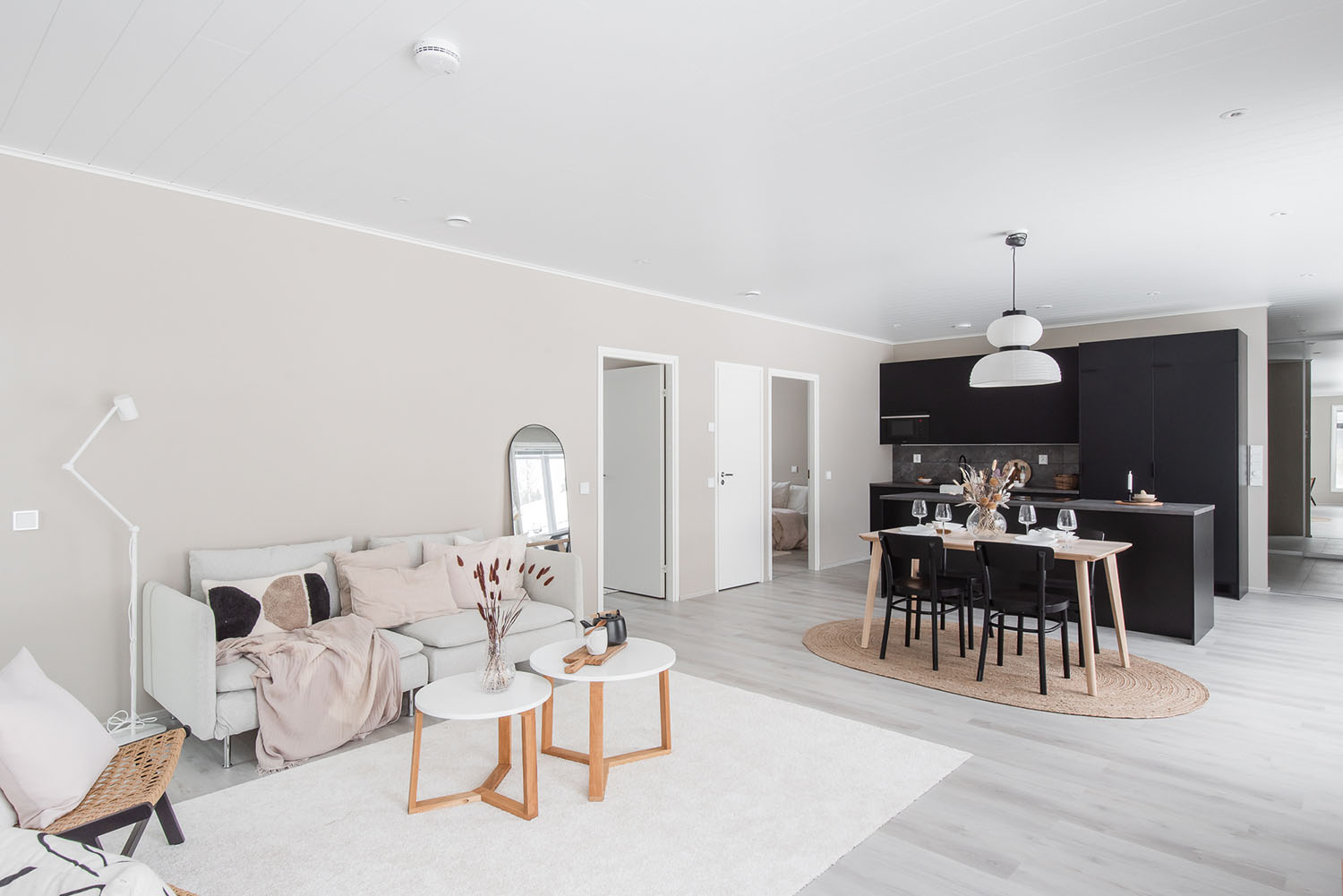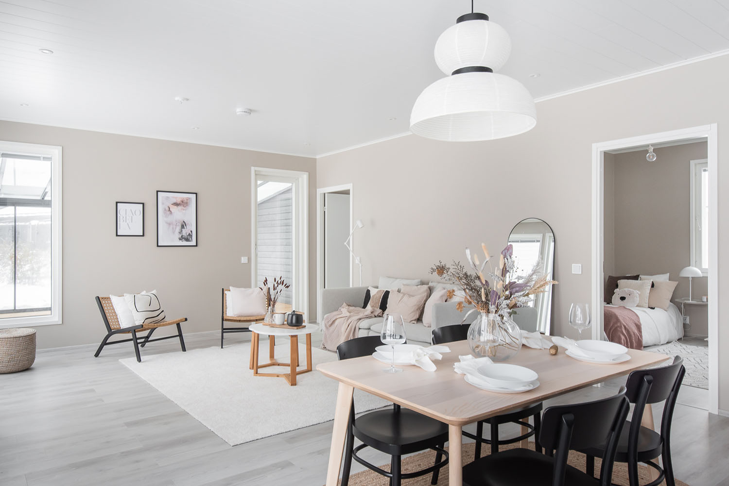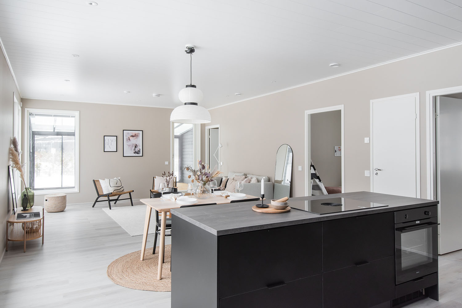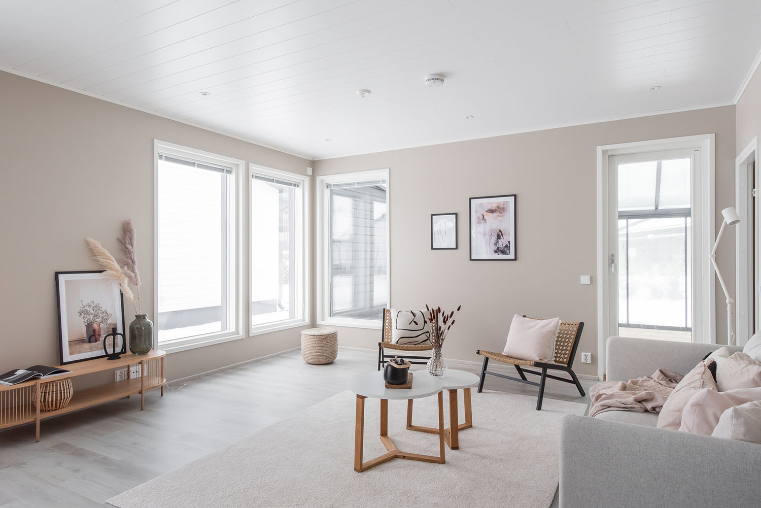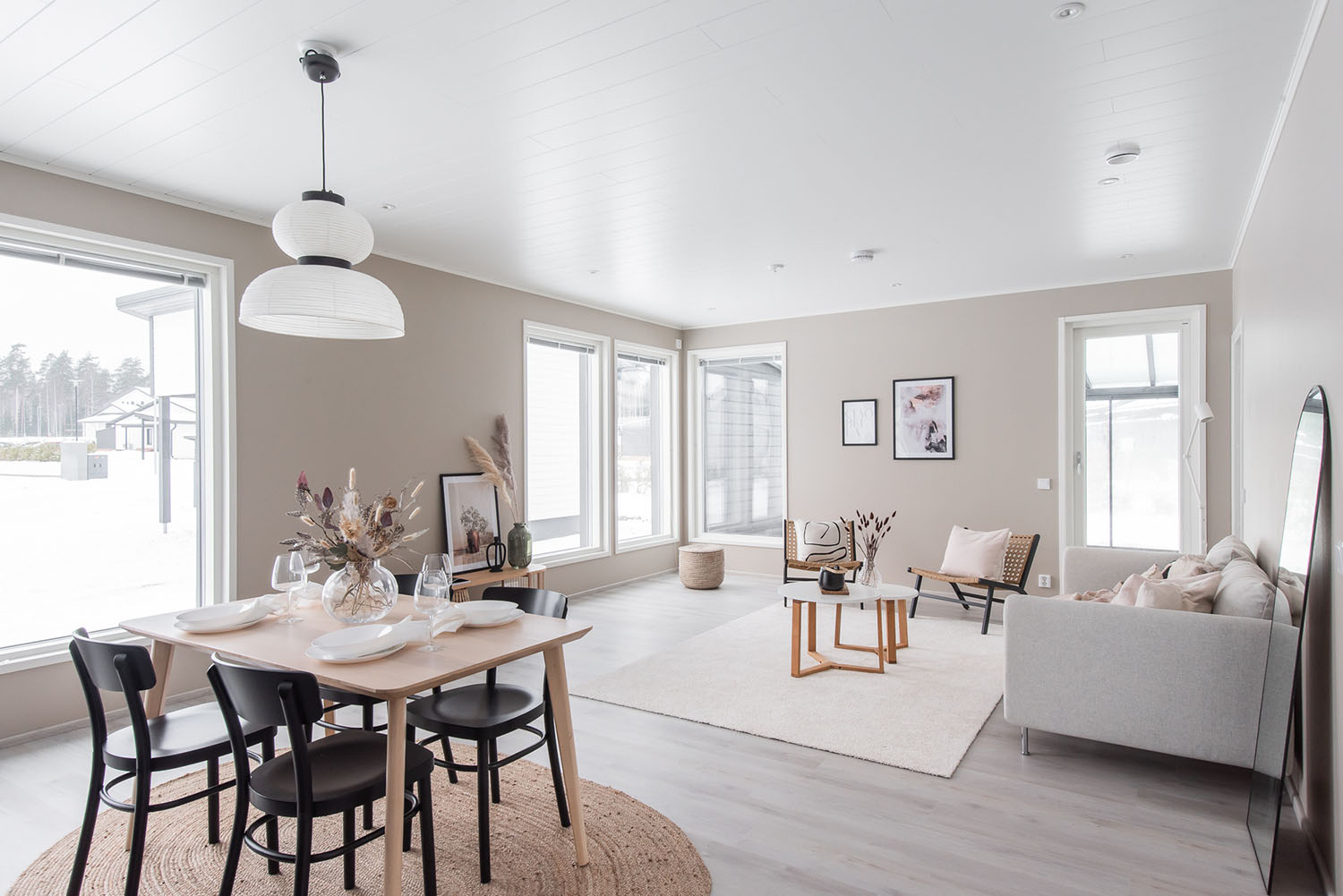 Valoisa kolmen makuuhuoneen okt noin 120 asuinneliötä joiden lisäksi autokatos ja lämmin varasto.