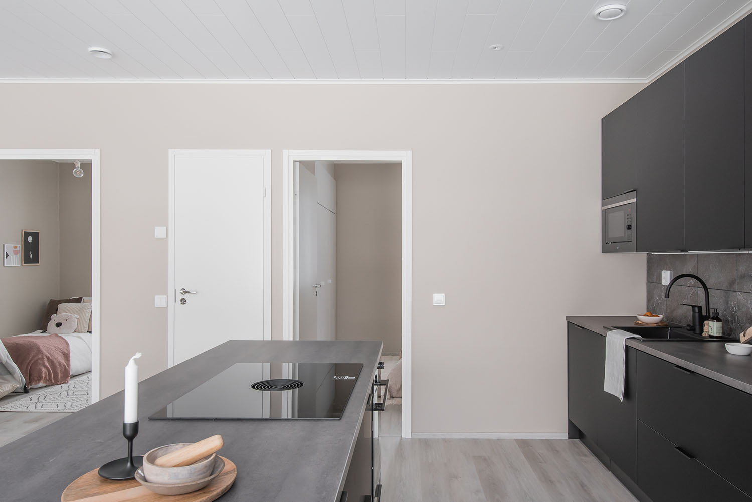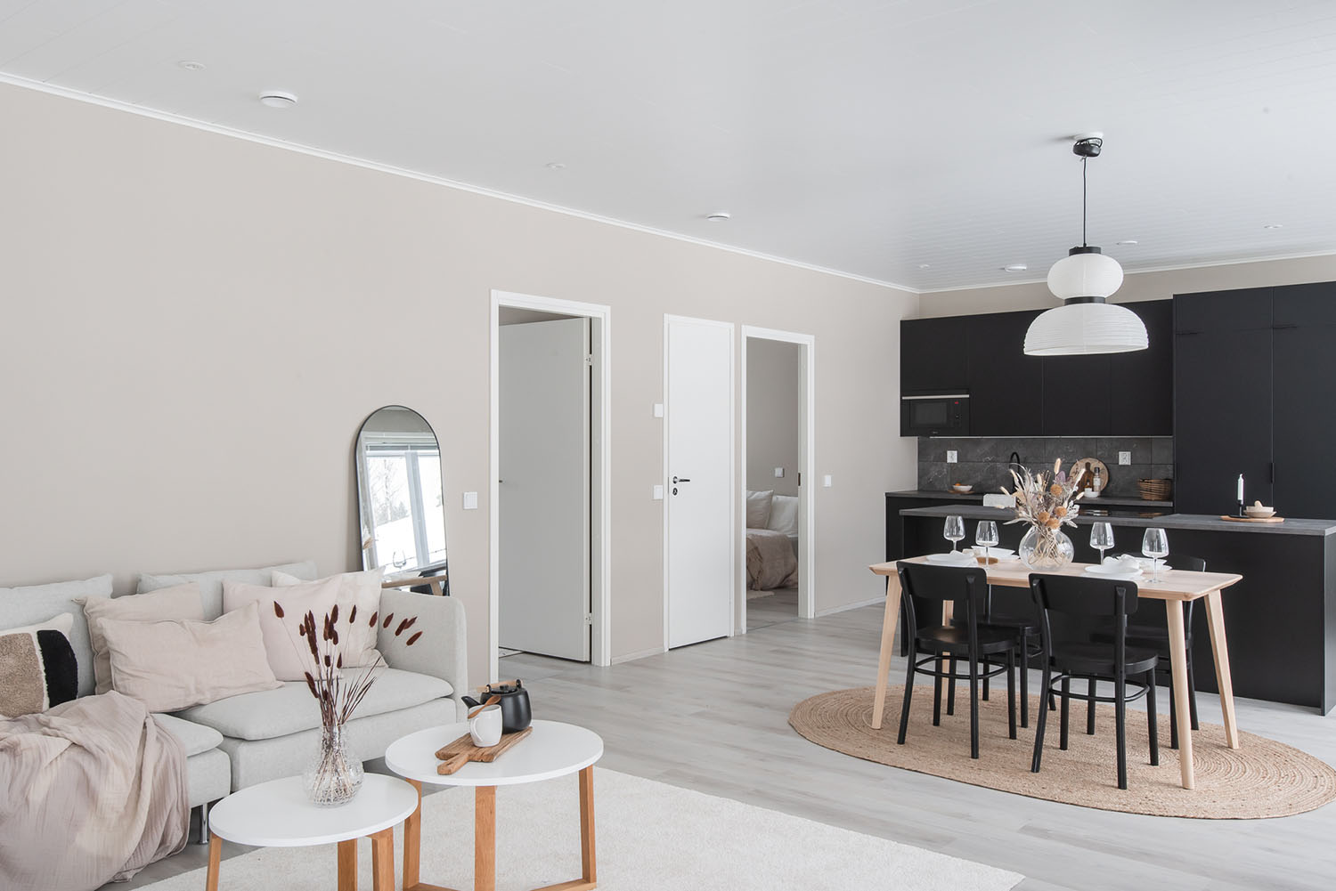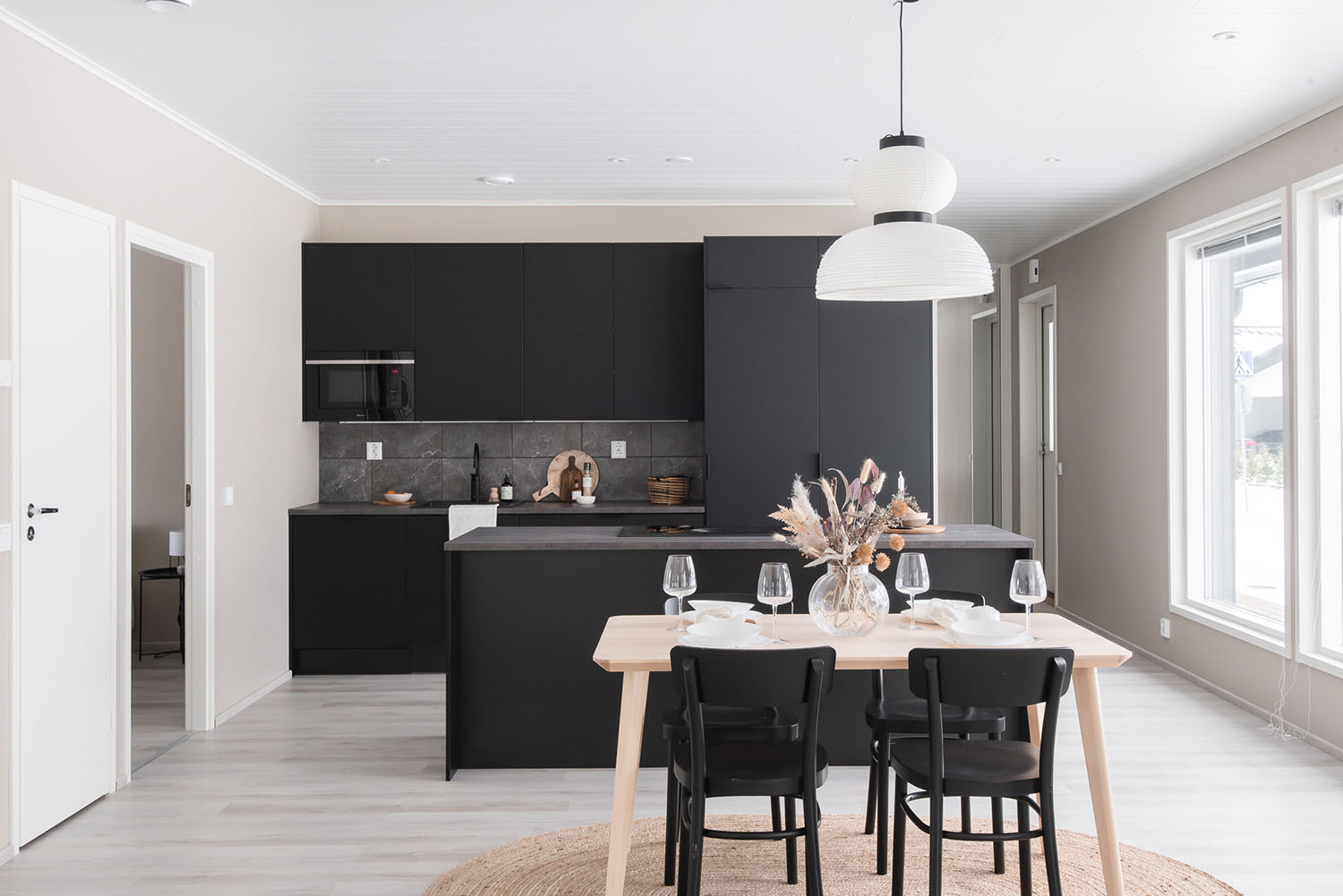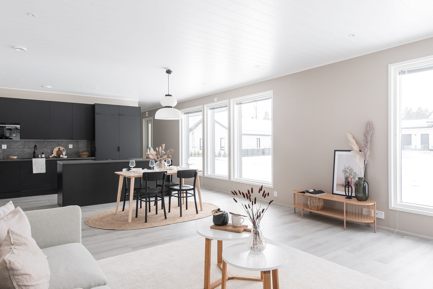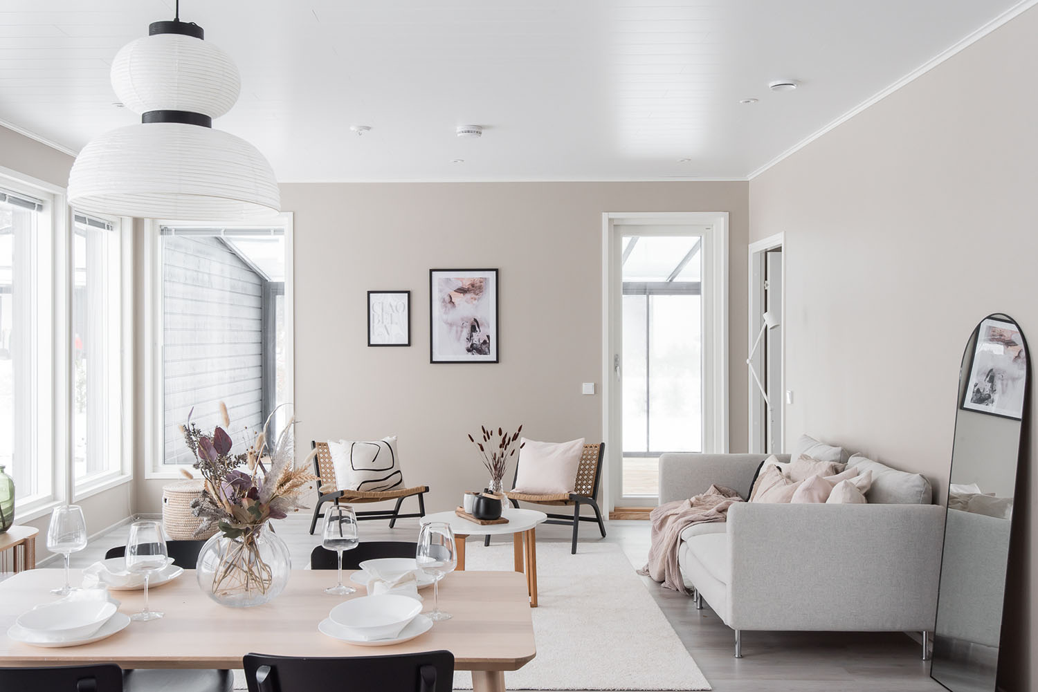 Valoisa kolmen makuuhuoneen okt noin 120 asuinneliötä joiden lisäksi autokatos ja lämmin varasto.